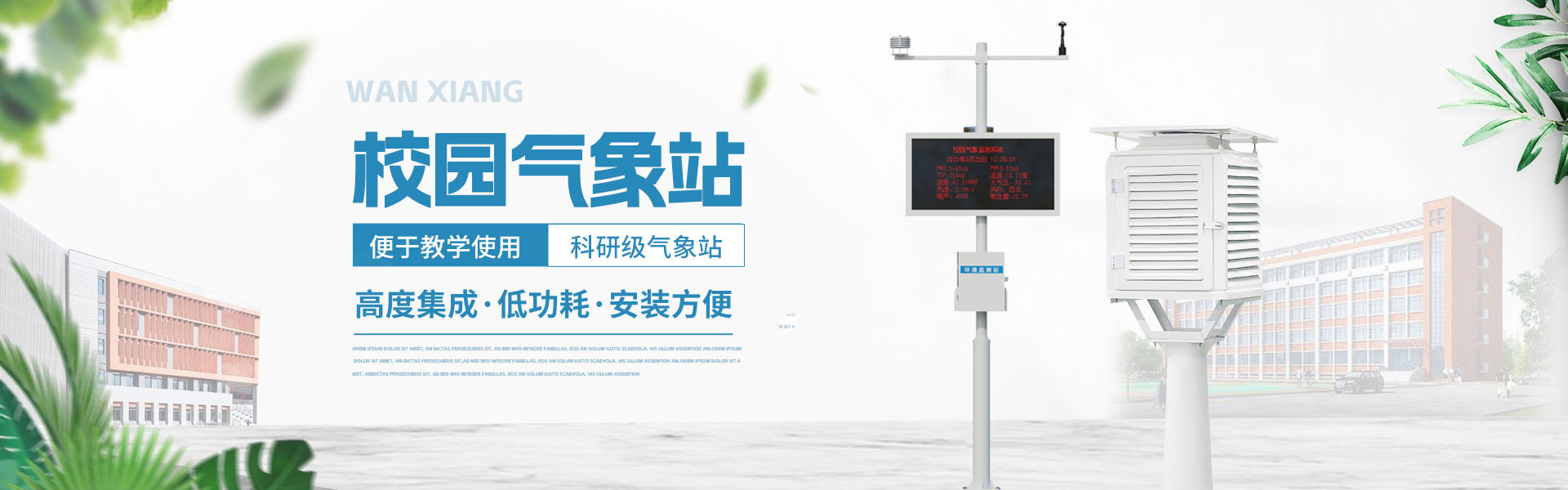 山東萬象環境科技有限公司官網主要產品有防爆氣象站,校園氣象站,農業氣象站,負氧離子監測站,超聲波氣象站,歡迎咨詢13276361891!